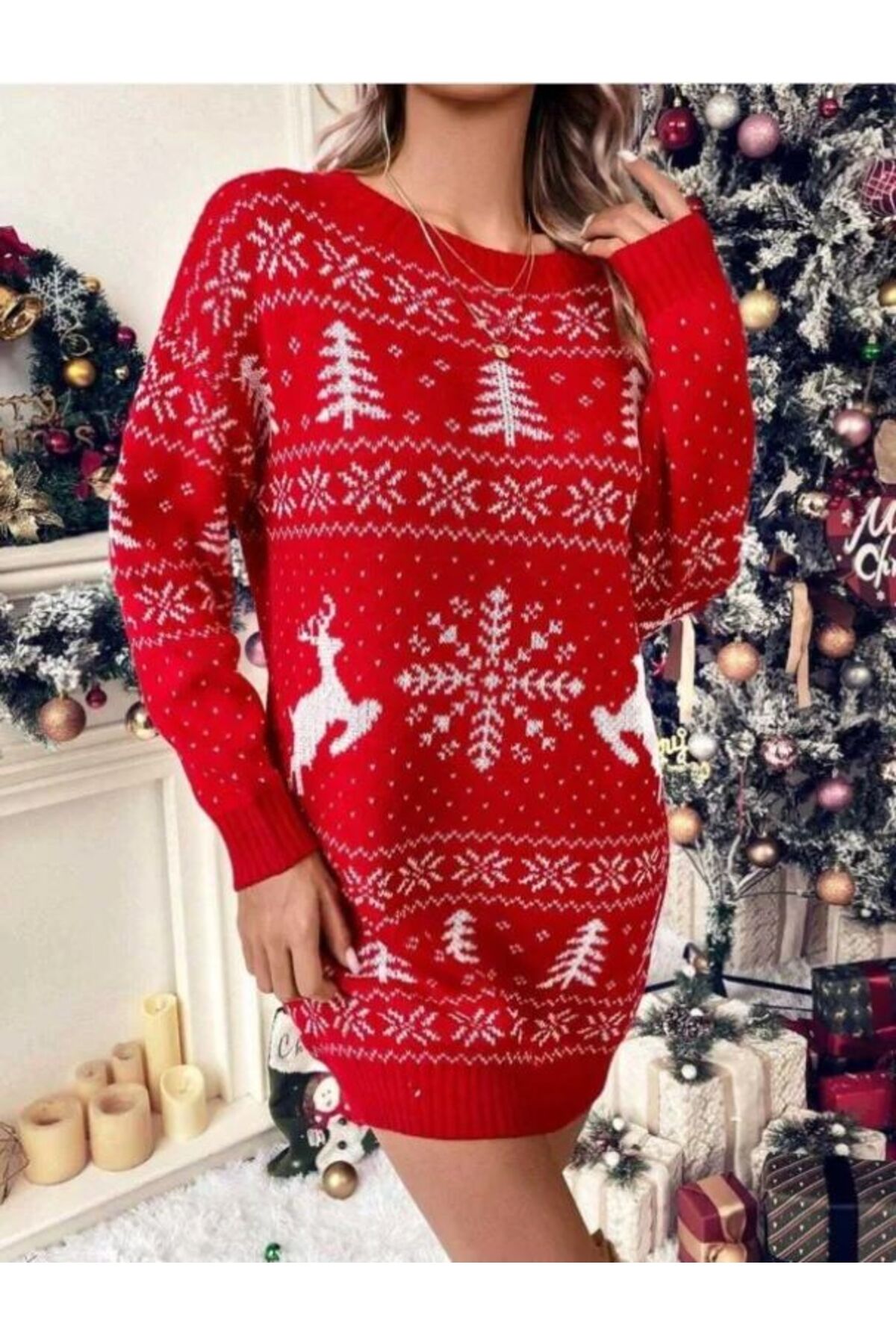 Yumuşak dokusuyla öne çıkan triko materyali, yılbaşı desenleriyle süslenmiş mini elbise & tunikte rahatlık ve şıklığı bir arada sunuyor.; Basic koleksiyonun sadeliğiyle dikkat çeken bu parça, günlük kullanıma uygun tasarımı ile her ortamda konforlu bir stil oluşturmanızı sağlıyor.; Uzun kollu yapısı sayesinde mevsimsel geçişlerde ideal sıcaklıkta tutarken iç göstermeyen özelliği ile güvenle tercih edebileceğiniz bir parça haline geliyor.; Klasik bisiklet yakası, modern çizgilerle harmanlanarak dinamik bir görünüm kazandırıyor.; Kalın triko dokumasıyla soğuk havalarda bile sizi sıcak tutacak şekilde tasarlanmıştır; bu sayede kış aylarında da vazgeçilmez bir parça olarak gardrobunuzda yerini alıyor.; Mini boyu sayesinde genç ve dinamik bir duruş sergilerken, relaxed kalıbıyla rahat hareket etme olanağı sunuyor.; Örgü dokumasının verdiği dayanıklılıkla uzun süreli kullanım vaat eden bu parça, yıkama sonrasında dahi formunu koruyor.; Düz renk seçeneğiyle kolayca kombinlenebilirlik sunarak gardrobunuzdaki diğer parçalarla uyumlu hale getiriyor.; Casual ortamlarda günlük kullanım için ideal olan bu yılbaşı temalı mini triko elbise & tunik, şıklığı ve rahatlığı bir araya getirerek stil sahibi görünmenizi sağlıyor.;