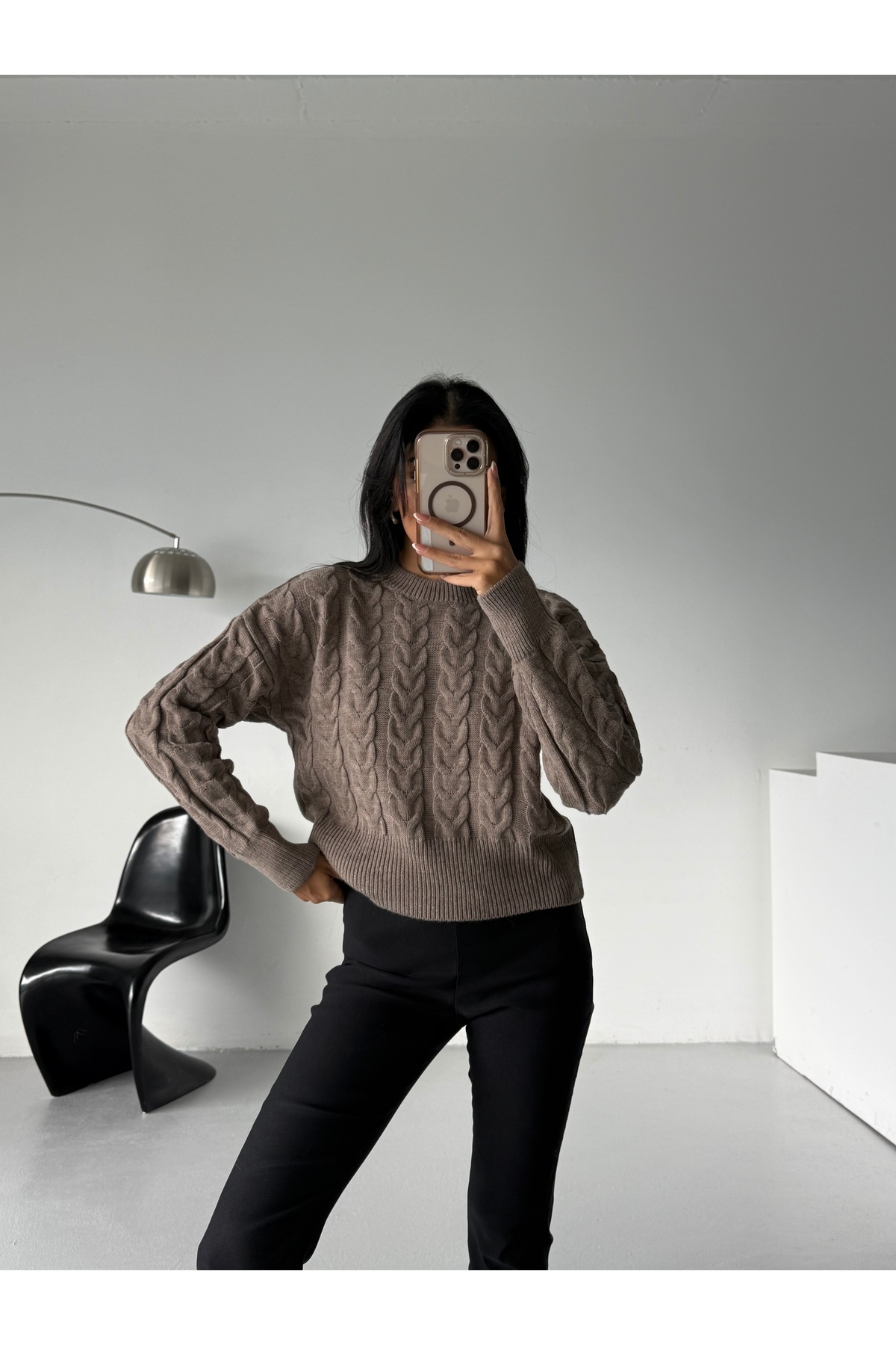 - Bisiklet yaka tasarımı ile modern ve şık bir görünüm sunar.; - Ara boy kesimi sayesinde hem rahatlık hem de stil sahibi olmanızı sağlar.; - Saç örgü deseniyle klasik triko kazaklara farklı bir dokunuş katmaktadır.; - 30 derecede yıkama imkanı, kolay bakım ve uzun ömürlü kullanım vaat eder.; - Sadece bir parça olarak tasarlanmıştır; günlük kombinlerinizde pratiklik sağlar.; - Kış sezonuna uygun sıcak tutan kalın yapısıyla soğuk günlerde vazgeçilmeziniz olacak.; - Tüylenmeyen materyali sayesinde konforlu bir deneyim sunarken, bakımının da zahmetsiz olmasını sağlar.; - Kemersiz tasarımı ile minimalist ve zamansız bir tarza sahip olursunuz.; - Basic koleksiyonun parçası olarak her gardıropta temel bir parça haline gelir.; - 0 akrilik içeriğiyle dayanıklılık ve yumuşaklık hissi verirken aynı zamanda ekonomiktir.; - Crop siluetiyle genç ve dinamik bir görünüm kazandırırken, yetişkinler için idealdir.; - Günlük ortamlarda rahatlıkla tercih edebileceğiniz bu kazak, cool & comfort persona'ya hitap eder.; - Uzun kollu tasarım soğuktan korurken, bisiklet yakası ile zarif detaylar ekler.