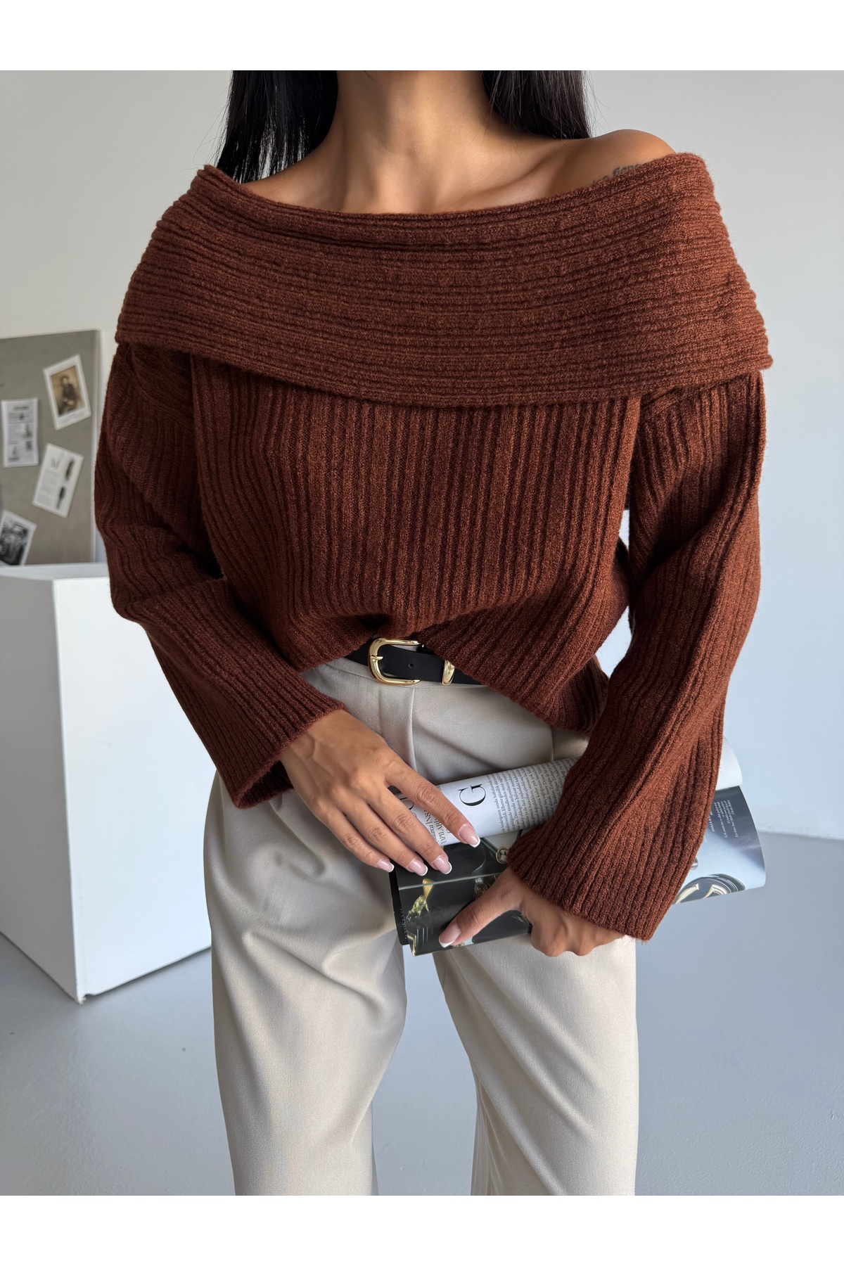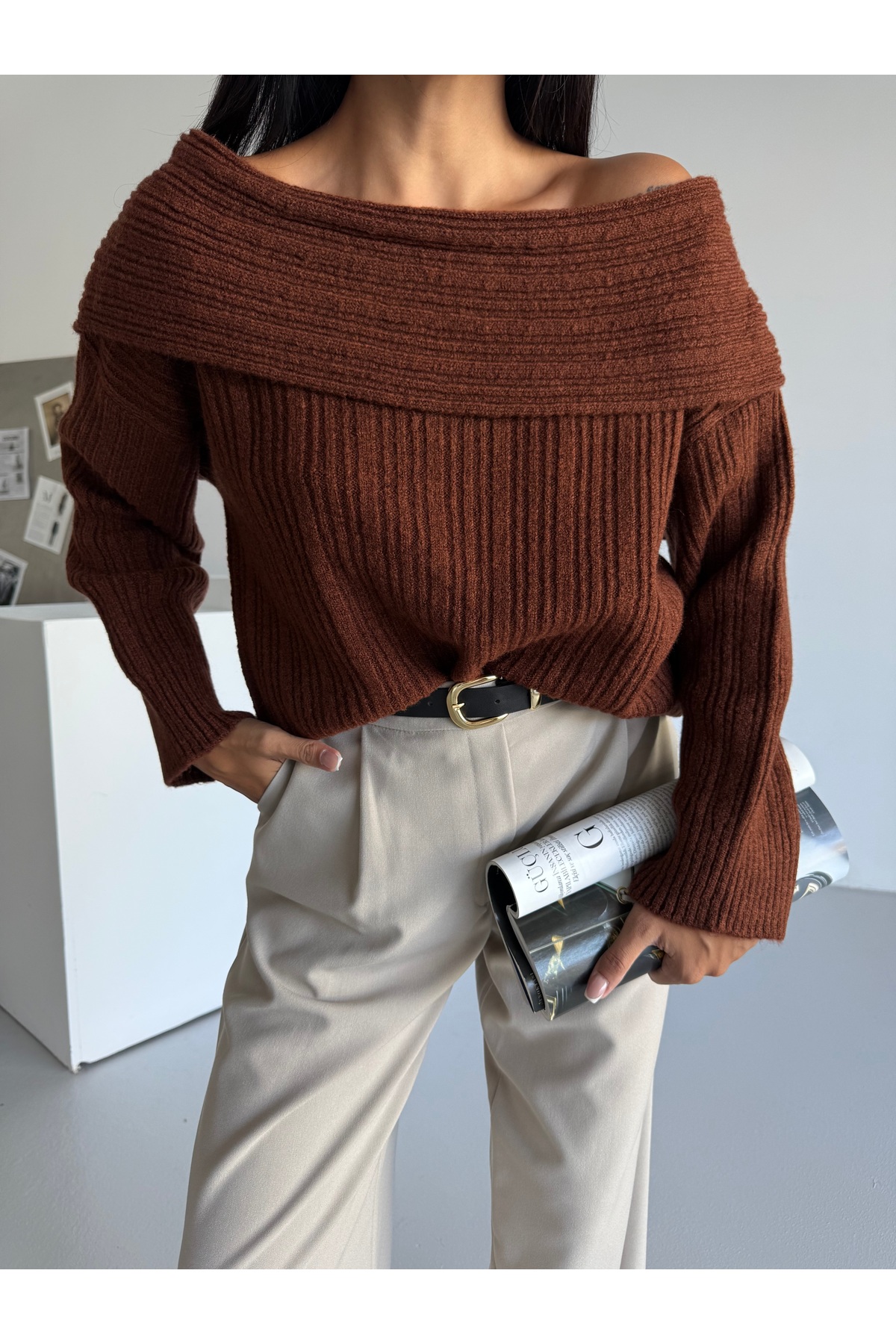 - Rahat kesimi ile günlük kullanım için ideal, Madonna yaka detayına sahip şık bir triko kazak.; - 30 derecede yıkama imkanı sunan pratik bakım özellikleriyle konforlu bir deneyim sağlar.; - Örgü dokuma tipi sayesinde sıcak tutan ve dayanıklı yapıya sahiptir.; - Cepsiz tasarımıyla modern ve minimalist bir görünüm sunar.; - Tek parça halinde gelen bu kazak, kolay kombin yapma avantajı sağlar.; - Kış sezonuna uygun olarak tasarlanmıştır; soğuk havalarda vazgeçilmez bir tercih olabilir.; - Cool & comfort persona'ya hitap ederek rahatlıkla stil sahibi olmanızı sağlar.; - Örme detaylarıyla zenginleştirilmiş tasarım, görsel bir çekicilik katmaktadır.; - Kalın yapısı sayesinde soğuk günlerde ekstra koruma sunarken yumuşak dokusuyla teninizde hoş bir his bırakır.; - Kemersiz oluşu pratikliği artırarak farklı aksesuarlarla kişiselleştirme imkanı tanır.; - Basic koleksiyonun sadeliğini yansıtan bu kazak, her gardrobun temel parçası olacak şekilde dizayn edilmiştir.; - 0 akrilik materyaliyle uzun süreli kullanım vaad eder.; - Relaxed silueti sayesinde vücut hatlarınıza uyum sağlayarak rahat hareket etmenizi destekler.; - Standart boyu ile çeşitli vücut tiplerine uygunluk sergilerken, casual ortamlarda rahatlıkla tercih edilebilir.; - TR menşeli üretim tesislerinden çıkan bu ürün yerel iş gücünün desteklenmesini teşvik eder.; - Triko kumaşı sayesinde esneklik kazandırarak gün boyu konforlu bir kullanım sunar.; - Kadın / kız cinsiyetine özel olarak üretilmiş olup feminen çizgilere sahip tasarımla estetik duruş sergiler.; - Relaxed kalıbıyla vücudu sarmayan geniş kesimi sayesinde gün içindeki tüm aktivitelerinizde size eşlik eder.