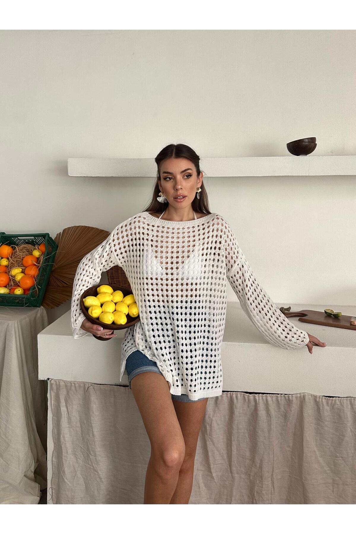- 0 pamuk materyali ile gün boyu konfor sunar ve cildinize nefes aldırır.; - Kayık yaka tasarımı, zarif bir dekolte detayıyla feminen çizgileri ön plana çıkarır.; - Ajurlu deseniyle hafif ve şık bir görünüm sağlar; yaz ayları için idealdir.; - Relaxed kalıbı sayesinde rahat hareket etme özgürlüğü sunarken, günlük kullanım için uygundur.; - Yırtmaç detayları hem modern bir dokunuş katmakta hem de hareket serbestliği sağlamaktadır.; - Sade ve şık tasarımıyla her türlü kombininize kolayca uyum sağlar; smart casual tarza hitap eder.; - Günlük ortamlarda rahatlıkla tercih edebileceğiniz bu tunik, basic koleksiyonun vazgeçilmez parçasıdır.; - 30 derecede yıkama imkanı sayesinde bakımı pratiktir ve uzun süre ilk günkü gibi kalmasını sağlar.