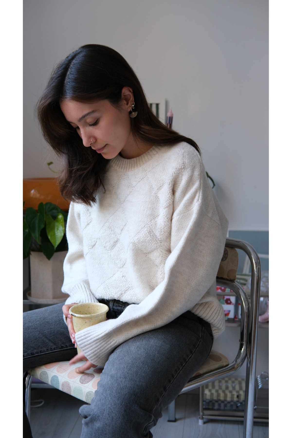 - Yumuşacık dokusuyla ekstra konfor sunan Kazak, soğuk kış günlerinde sizi sıcak tutar.; - Günlük kullanım için ideal olan bu triko kazak, rahatlığı ve şıklığı bir arada sunar.; - Uzun kollu tasarımı ile kollarınızı soğuktan korurken, baklava deseniyle stilinizi öne çıkarır.; - Baskısız tasarımıyla sade ve zamansız bir görünüm kazandırırken, kemersiz yapısıyla rahat hareket etme olanağı tanır.; - Tek parça olarak gelen bu ürün, gardırobunuzdaki temel parçalardan biri olacak.; - Oversize kalıbı ile modern ve rahat bir siluet çizerken, bisiklet yaka detayı ile feminen bir dokunuş katıyor.; - Yetişkin kadınlar için tasarlanmış standart boyuyla her vücut tipine uyum sağlar.; - TR menşei garantisiyle yerli üretim kalitesini deneyimleyin.;