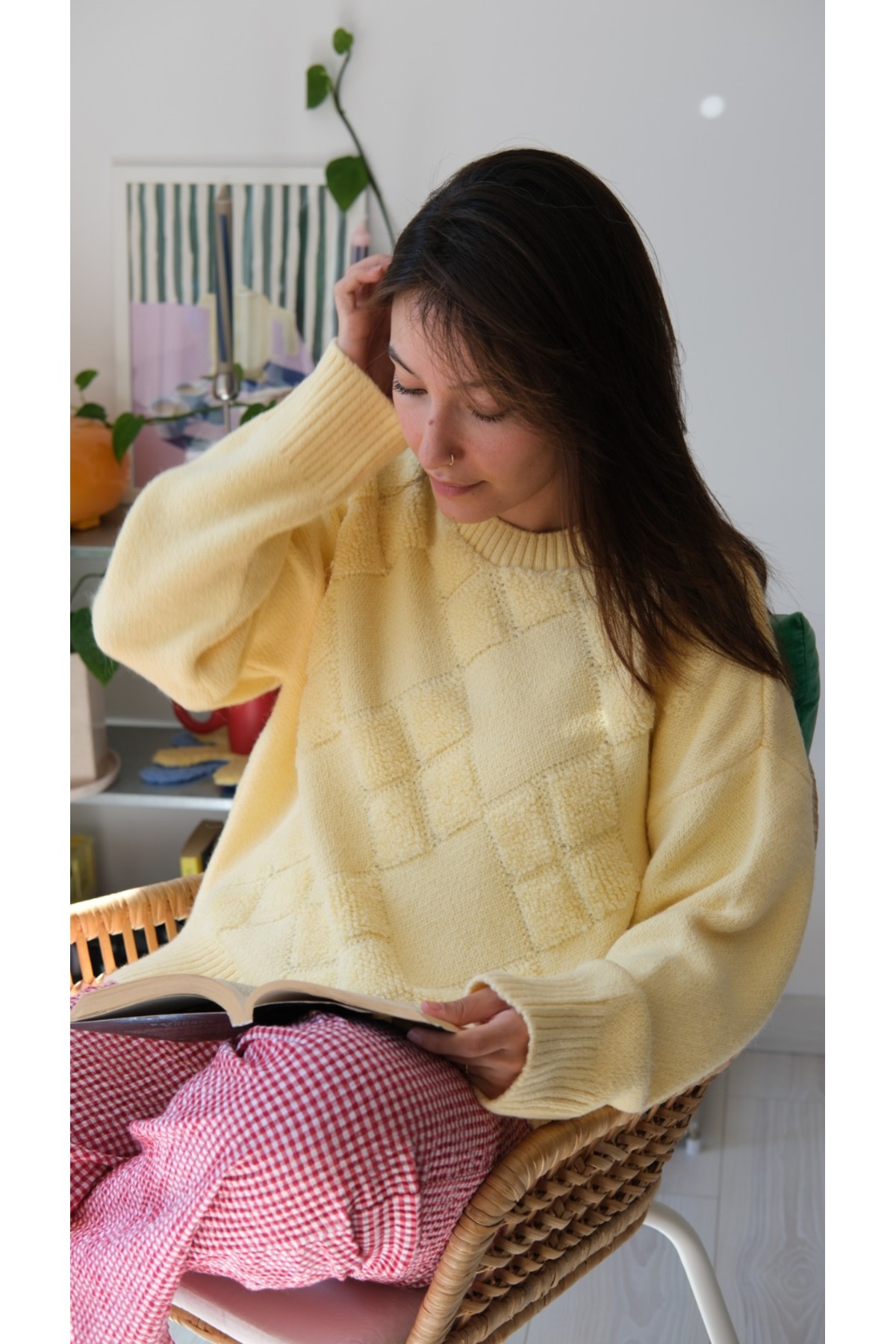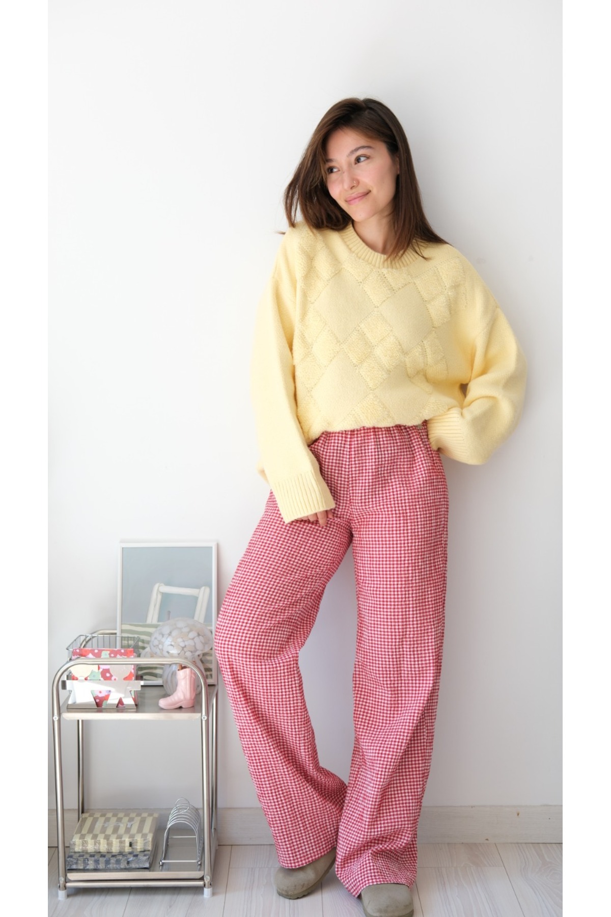 - Yumuşacık dokusuyla ekstra konfor sunan Kazak, soğuk kış günlerinde sizi sıcak tutar.; - Günlük kullanım için ideal olan bu triko kazak, rahatlığı ve şıklığı bir arada sunar.; - Uzun kollu tasarımı ile kollarınızı soğuktan korurken, baklava deseniyle stilinizi öne çıkarır.; - Baskısız tasarımıyla sade ve zamansız bir görünüm kazandırırken, kemersiz yapısıyla rahat hareket etme olanağı tanır.; - Tek parça olarak gelen bu ürün, gardırobunuzdaki temel parçalardan biri olacak.; - Oversize kalıbı ile modern ve rahat bir siluet çizerken, bisiklet yaka detayı ile feminen bir dokunuş katıyor.; - Yetişkin kadınlar için tasarlanmış standart boyuyla her vücut tipine uyum sağlar.; - TR menşei garantisiyle yerli üretim kalitesini deneyimleyin.;